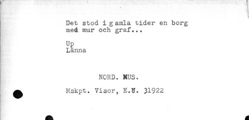 //// -K //// . ' ...... , - ' ^ 1 //// Det stod i g amla tider en borg //// med mur och graf*.. //// Up //// Länna //// NORD. MUS. //// ^ Mskpt. Visor, E.U. 31922 //// * ////