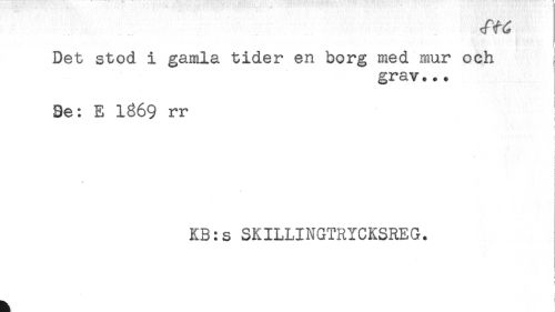 //// Det stod i gamla tider en borg med mur och //// grav... //// Se: E 1869 rr //// i //// f //// f //// i //// t //// KB:s SKILLINGTRICKSREG. //// ! ////
