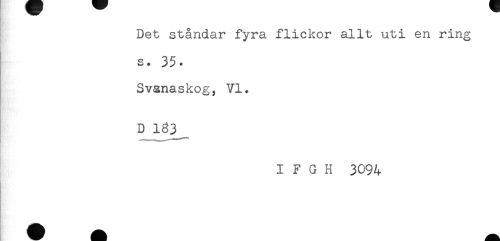 //// Det ståndar fyra flickor allt uti en ring //// S. 33. //// Svanaskog, VI. //// D 183_ //// I F G H 3094 ////