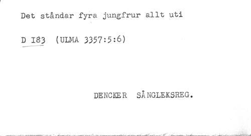 //// Det ståndar fyra jungfrur allt uti //// D 183 (ULMA 3357:5:6) //// DENCKER SÅNGLEKSREG. ////