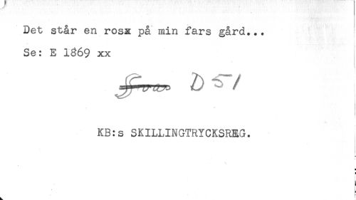 //// Det står en rosx på min fars gård... //// Se: E 1369 xx //// ! //// I //// KB:s SKILLINGTRYCKSREG. //// - //// k //// g ////
