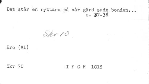 //// Det står en ryttare på vår gård sade bonden... //// s. 37-38 //// * //// Bro (VI) ' //// Skv 70 I F G H 1015 //// ' //// f //// < //// ' ////