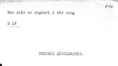 //// Det står en ungkarl i vår ring //// D 48 //// DENCKER SÅNGLEKSREG. ////