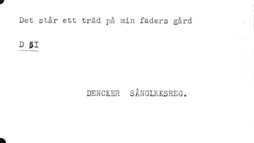 //// Det står ett träd på min faders gård , ! //// D //// DENCKER SÅNGLEKSREG. ////