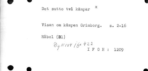 //// ! //// Det sutto två kämpar ^ //// Visan om kämpen Grimborg. s. 2-16 //// Håbol (Bl) //// / I F G H : 1209 ////