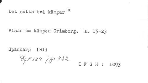 //// Det sutto två kämpar * //// ! //// Visan om kämpen Grimborg. s. 15-23 //// ! //// Spannarp (Hl) //// ^ ^ I F G H : 1093 ////