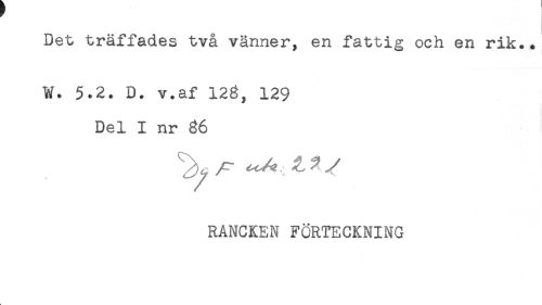 //// Det träffades två vänner, en fattig och en rik.. //// W. 5.2. D. v.af 128, 129 //// Del I nr 86 //// JA? ^ ^ < //// /RANCKEN FÖRTECKNING //// L ////