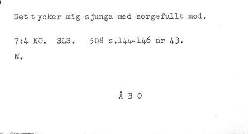//// Det tycker mig sjunga med sorgefullt mod. //// 7:4 KO. SLS. 503 s.144-146 nr 43. //// N. //// ÅBO ////