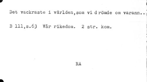//// Det vackraste i världen,som vi drömde om varann..i //// H //// r //// t //// i //// B 111,s.63 Vår rikedom. 2 str. kom. //// i //// ! //// i //// s //// ! //// E //// t //// . I //// RÅ //// t //// : ////