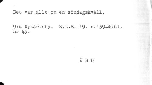 //// Det var allt om en söndagskväll. //// 9:4 Nykarleby. S.L.S. 19. s.l59-ål6l. //// nr 45. //// * //// i. //// : //// ÅBO ////