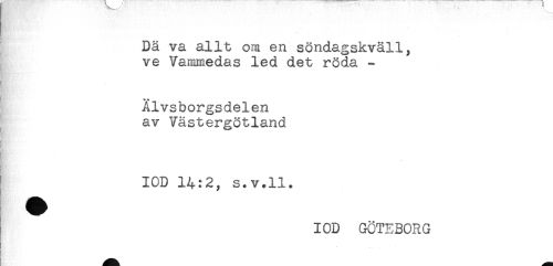 //// Dä va allt om en söndagskväll, //// ve Vammedas led det röda - //// Älvsborgsdelen //// av Västergötland //// i //// IOD 14:2, s.v.ll. //// IOD GÖTEBORG ////