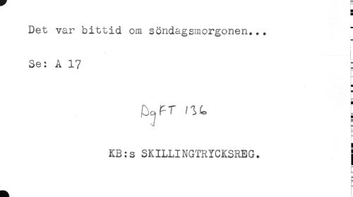 //// H //// Det var bittid om söndagsmorgonen... //// Se: A 17 : //// H //// P //// KB:s SKILLINGTRYCKSREG. j //// r //// L ////