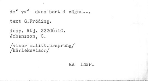 //// de* va* dans bort i vägen... //// text G.Fröding, //// insp. Rtj. 22206:10. //// Johansson, G. //// /visor m.litt.ursprung //// //kärleksvisor //// /RA INSP. ////