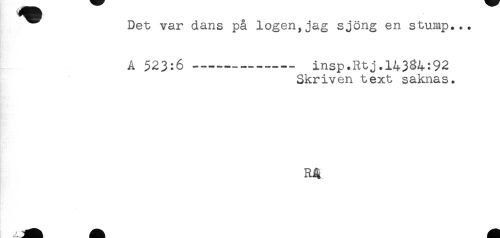 //// Det var dans på logen,jag sjöng en stump... //// A 523:6 --- insp.Rtj.14334:92 //// Skriven text saknas. ////