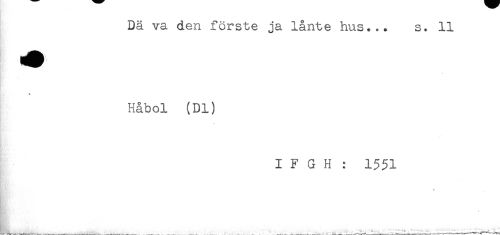 //// Dä va den förste ja lånte hus... s. 11 //// Håbol (Dl) //// . //// I F G H : 1351 //// * ////