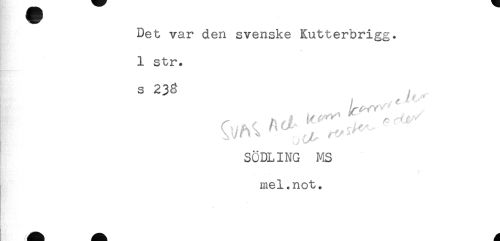 //// Det var den svenske Kutterbrigg. //// 1 str. //// s 238 //// SÖDLING MS //// mel.not. ////