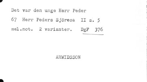 //// ! //// i //// Det var den unge Herr Peder //// 67 Herr Peders Sjöresa II s. 5 //// mel.not. 2 varianter. DgF 376 //// i //// ) //// t //// * //// i //// i //// ARWIDSSON ////