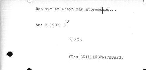 //// Det var en afton när stormen^en... //// 3 //// Se: E 1902 1 //// } . - ' //// ^ KB:s SKILLINGTRYCKSREG. //// - ////
