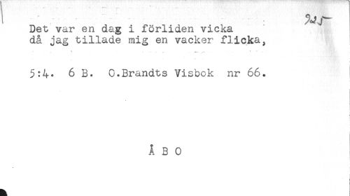 //// Det var en dag i förliden vicka //// då jag tillade mig en vacker flicka, //// 6 B. C.Brandts Visbok nr 66. //// i //// ÅBO //// < ////
