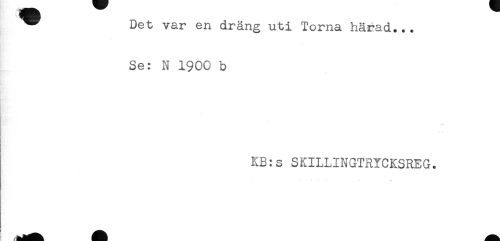 //// " Det var en dräng uti Torna härad... //// Se: N 1900 b //// {t //// L //// KB:s SKILLINGTRYCKSREG. ////