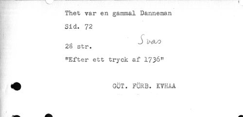 //// Thet var en gammal Danneman //// Sid. 72 //// 28 str. //// "Efter ett tryck af 1736" //// ^ GÖT. FÖRB. KVHAA ////