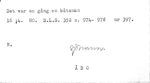 //// Det var en gång en båtsman //// 16 ;4. HO. S.L.S. 352 s. 974- 978 nr 397. //// N. ^ ////