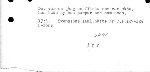 //// Det var en gång en flicka som var skön, //// hon hade hy som purpur och som snön, //// ^ 17:4. Svenssons saml.häfte Nr 7,s.127-129 //// H-fors //// A B 0 //// * ////