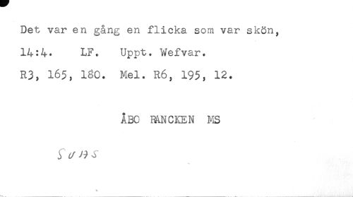 //// Det var en gång en flicka som var skön, //// 14:4. LF. Uppt. Wefvar. //// R3, 165, 160. Mel. R6, 195, 12. //// ABC FANCKEN MS //// % ////