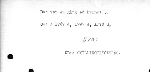 //// Det var en gång en kvinna... //// . - S .... * .g //// Se: N 1769 a; 1797 d; 1798 d, //// j ty^j //// ^ KB:s SKILLINGTRYCKSREG. //// ^ - ////