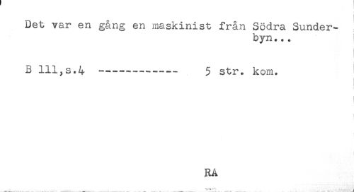 //// Det var en gång en maskinist från Södra Sunder- //// byn... i //// i //// B 111,s.4 ---- 5 str. kom. //// - //// ! //// RÅ ////