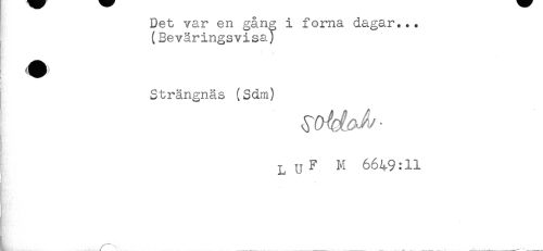//// Det var en gång i forna dagar... //// (Beväringsvisa) //// Strängnäs (Sdm) //// L u F M :11 //// t //// t, . : \ ____-_____ ____ . .. ^ ....... .... ////