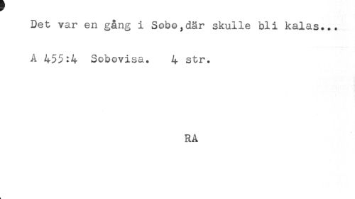 //// Det var en gång i Sobo,där skulle bli kalas... //// A 455:4 Sobovisa. 4 str. //// RA //// k ////