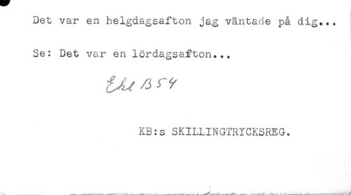 //// Det var en helgdagsafton jag väntade på dig... //// Se: Det var en lördagsafton... //// KB:s SKILLINGTRYCKSREG. ////