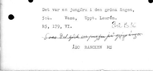 //// MS?" //// Det var en jungfru i den gröna ängen, //// 5:4* Vasa, Uppt, Lauren. //// R5, 179, VI. //// ÅBO RÅNCKEN MS //// i ////