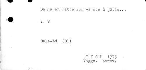 //// Dä v a en jätte som va ute å jätte... //// t //// : //// Dals-Ed (Dl) //// j //// I F G H 1775 //// Vaggv. barnv. //// t //// /