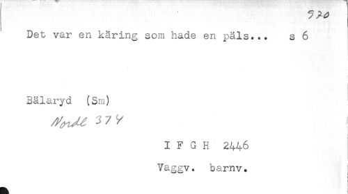 //// Det var en käring som hade en päls... s 6 //// i //// - //// Bälaryd (Sm) //// 37^ j //// I F G H 2446 //// Vaggv. barnv. ! //// i //// ) ////
