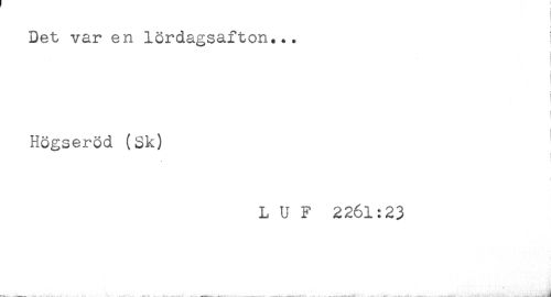 //// !- //// Det var en lördagsafton... ' //// < //// Högseröd (Sk) //// ! //// L U F 2261:23 //// -t*.. .. _____^ ^ . , . _ , ,<" - ' ////