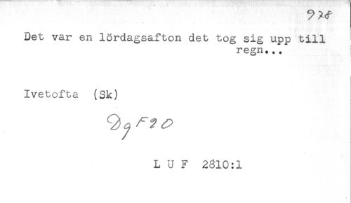 //// Det var en lördagsafton det tog sig upp till ' //// regn... I //// i //// Ivetofta (Sk) //// L U F 2S10:1 ////
