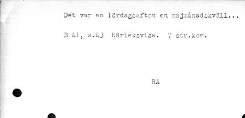//// f * * * * ' " ^ . ...... //// . //// Det var en lördagsafton en majmånadskväll... //// B 41, s.43 Kärleksvisa. 7 str.kom. //// RA ////