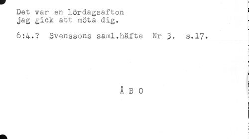 //// Det var en lördagsafton ^ //// jag gick att möta dig. //// 6:4.? Svenssons saml.häfte Nr 3. s.17. //// t //// i* //// H //// - //// i //// ÅBO //// b //// ) //// r //// = ////