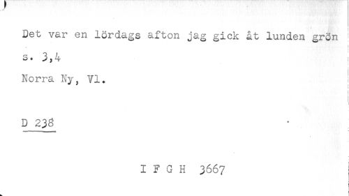 //// Det var en lördags afton jag gick åt lunden grön //// i //// ** ' //// s. 3,4 //// i //// Norra Ny, VI. ! //// i //// D 238 //// I F G H 3667 ////