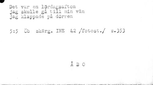 //// Det var en lördagsafton //// jag skulle gå till min vän //// jag klappade på dörren //// 5:5 Cb skärg. INE 42 /fotost./ s.353 //// Ä B C ////