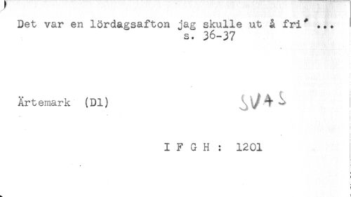 //// Det var en lördagsafton jag skulle ut å fri* ... //// s. 36-37 //// Ärtemark (Dl) //// < //// t //// i //// I F G H : 1201 ////