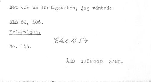 //// Det var en lördagsafton, jag väntade //// SLS 406. //// Friarvisan. //// No. 145. //// ÅBO SJÖBERGS SAML. ////