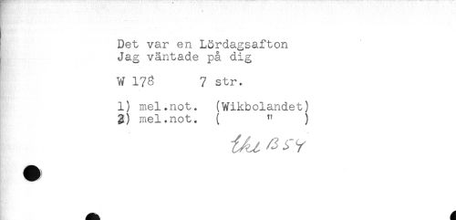 //// . ... - . . ^ //// Det var en Lördagsafton //// i Jag väntade på dig //// ...., //// W 173 7 Str. //// 1) mel.not. (Wikbolandet) //// 3) mel.not. ( " ) ////
