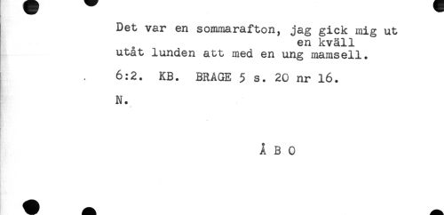 //// Det var en sommarafton, jag gick mig ut //// en kväll //// utåt lunden att med en ung mamsell. //// 6:2. KB. BRAGE 5 s. 20 nr 16. //// N. //// ÅBO ////