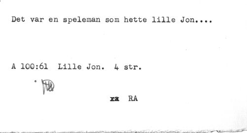 //// Det var en speleman som hette lille Jon.... //// A 100:61 Lille Jon. 4 str. //// xx RA ////