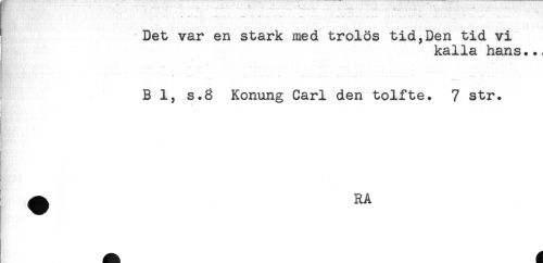 //// <t "*-' -. * - . - . . . - 1 //// Det var en stark med trolös tid,Den tid vi //// kalla hans.., //// Bl, s.8 Konung Carl den tolfte. 7 str. //// a - //// g ////