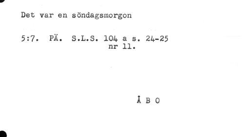 //// Det var en söndagsmorgon //// 5:7. PÄ. S.L.S. 104 a s. 24-25 //// nr 11. //// ÅBO ////
