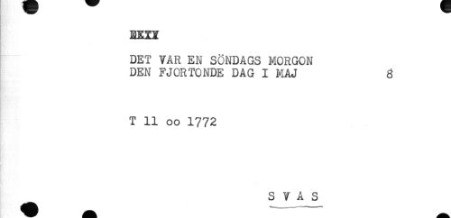 //// EETX //// DET VAR EN SÖNDAGS MORGON //// DEN FJORTONDE DAG I MAJ 8 //// T 11 oo 1772 //// S V A S ////